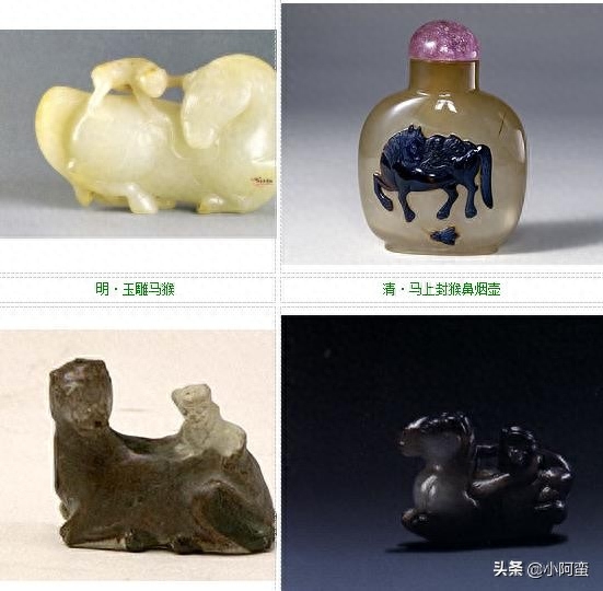 我还曾在一本《玉器全集》里,看到过美国旧金山亚洲艺术馆(Asian Art Museum)收藏的一件汉代玉雕作品的图片。一只猴子骑在马背上,另外一只猴子牵着马缰。这也许是马厩养猴习俗的最早物证。而编辑者不知这个习俗和传说,却根据现代常见的习俗,将这件玉器标名为“马上封侯”,这是不对的,应该改正。可惜手头没有这本书,无法扫描图像来与网友共赏。一些红学家不能注释“马猴”,也是因为不知这个古老的习俗,所以很多注本对“马猴”一词就略而不注或注而不详、注而不当。