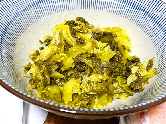 第一步:自制酸菜放在清水里冲洗一下,因为自制的原味酸菜是很酸很咸的,吃之前清洗一下可以减少酸咸的味道,清洗好之后,放在一旁备用。