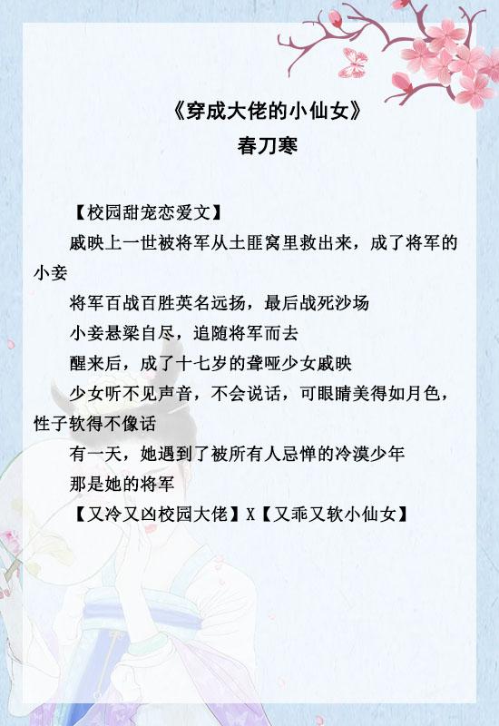 「推文」五本软萌女主文,强推《穿成大佬的小仙女》,沙雕治愈