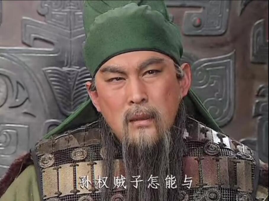 孙权将领杀了关公,得到了荆州,在荆州设宴庆功,吕蒙建功被尊为上位,吕蒙已经喝得醉醉熏熏,忽然,摔酒杯在地,一手揪住孙权的手,按孙权头在酒桌,当着文物百官厉声大骂孙权“碧眼小儿!紫髯鼠辈!还识我否?我自破黄巾以来,纵横天下三十余年,今被汝一旦以奸计图我,我生不能啖汝之肉,死当追吕贼之魂!我乃汉寿亭侯关云长也。”