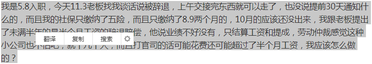 1、你5.8入职,11.3被辞退,不满半年(还差5天半年,谁说小老板不懂劳动法的 ( 'ω' ) 手动狗头),违法解除劳动合同是赔偿2N,公司应该赔你1个月工资(如果满了半年,就该赔你2个月了);