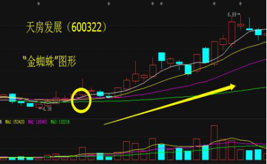 天房发展600322出现“金蜘蛛”形态之后,在圈的位置买入!随后暴涨123%!