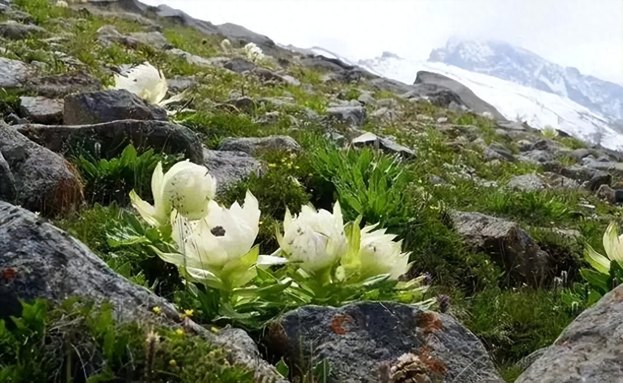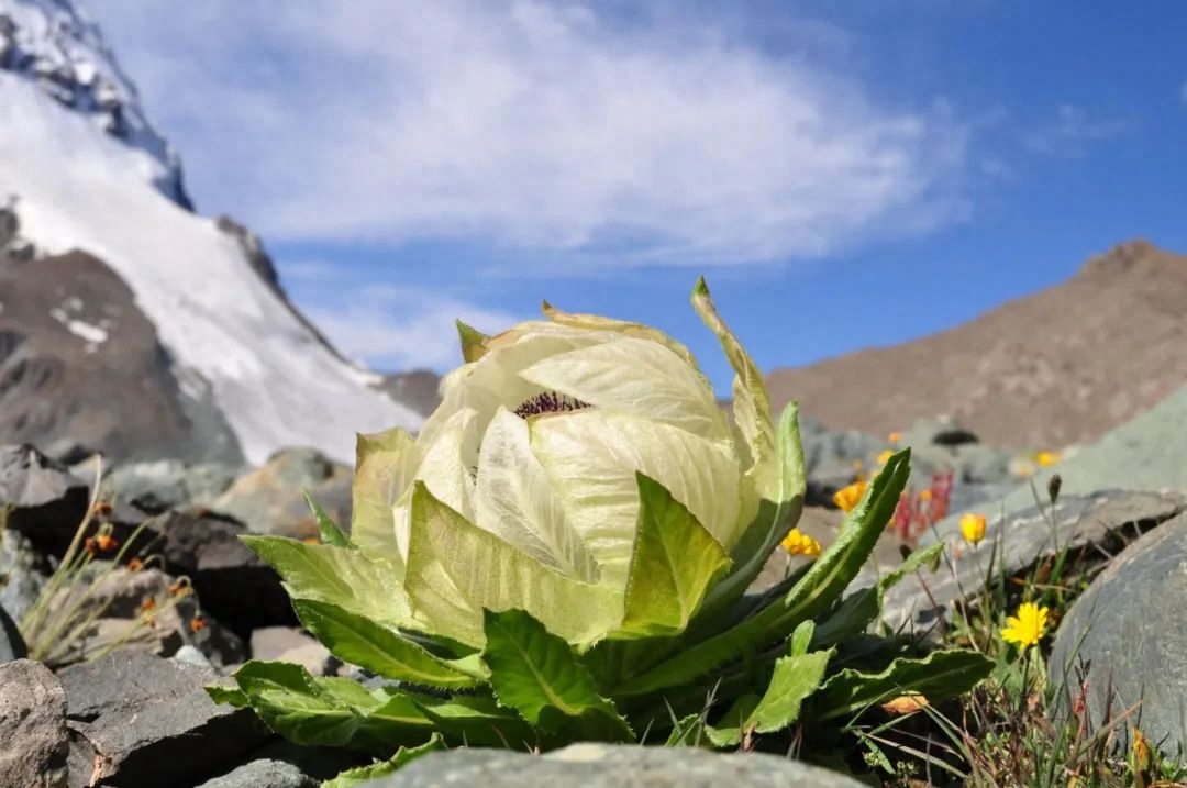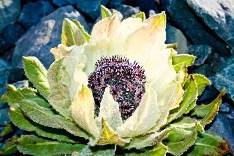 雪莲,菊科多年生草本植物,生长在海拔4800-5800米的高山流石坡以及雪线附近的碎石间。用种子繁殖,种子在0℃发芽,3-5℃生长。幼苗能经受零下21℃的严寒。在生长期不到两个月的环境里,高度却能超过其它植物的五到七倍,虽然要五年才能开花,但实际生长天数只有八个月,这在生物学上也是相当独特的。