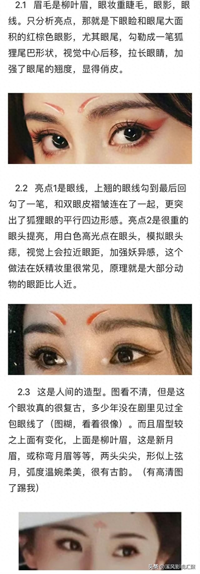 除了官方发的非遗之外,还有粉丝总结了杨幂的妆容,细看眼线和眼影都很有特色。