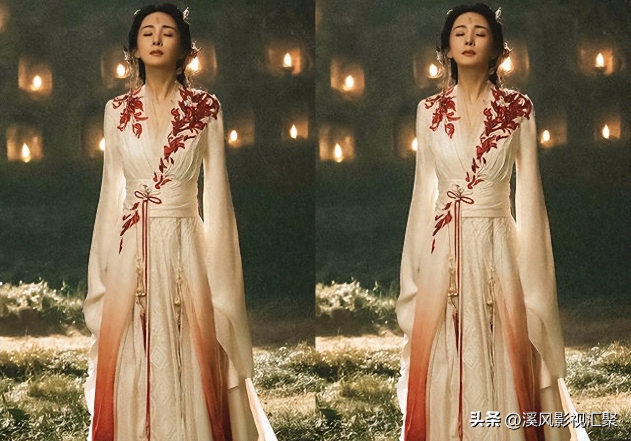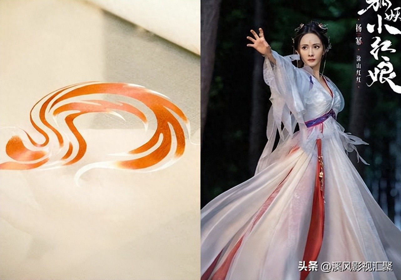 第一个是苏绣工艺的红色狐火,在杨幂白衣造型的额头上可以看到,图案似乎差不多?
