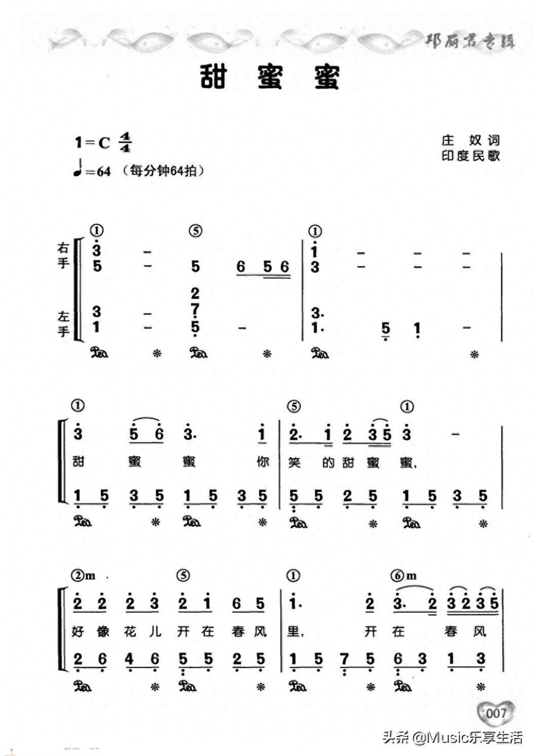 钢琴简谱 ▏邓丽君《甜蜜蜜》曲谱分享,适合看不懂五线谱的朋友
