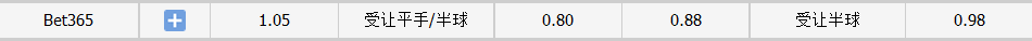 三大主流公司,立博、威廉希尔、伟德客胜水位从1.91-1.95,第一低赔项受注水位相当凝聚,而重金引援有爆冷可能的曼城,胜平水位上却没有得到博彩公司重视。