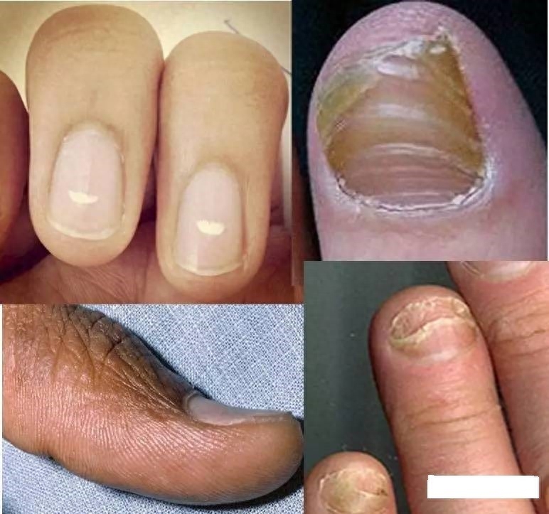 建议:灰指甲需要积极治疗。定期查血糖。指甲脆或软可以适当补充钙镁等元素。指甲变紫尽早排除肺部疾病和心脏疾病。