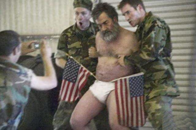 而萨达姆在监狱的照片也在不断的被曝光,甚至有照片中,萨达姆仅穿内裤,并被两个美军出挟持取乐,甚至连国旗都插在不可描述的地方。萨达姆死前狱中照片曝光,被脱光衣服虐待,群众的反应难以理解。