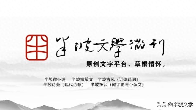 半坡,纯文字平台,草根情怀!设五大版块。一、半坡微小说。二、半坡短散文。三、半坡古风(近体诗词)。四、半坡诗苑(现代诗歌)。五、半坡摆谈(微评论与小杂文)。欢迎关注。