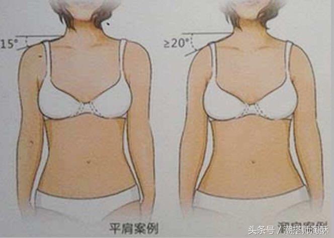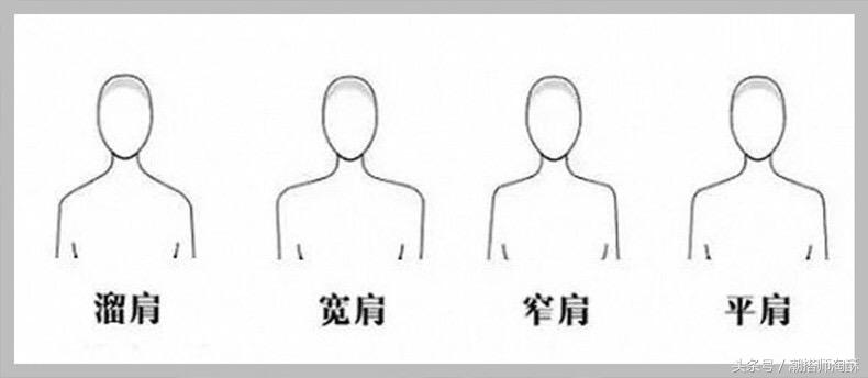 穿任何衣服对肩型都是有讲究的,找准肩型再对症下药,一般分为平肩、宽肩、窄肩、溜肩四种。 大家根据上图,判断自己属于哪一种! K妹一一告诉你,你适合什么?