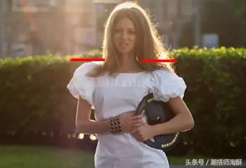 和宽肩相反,如果你的肩膀窄于臀部最宽的部位, 肩膀的宽度比臀部还要窄。窄肩的妹纸一旦穿不好会显得上身窄下身宽,像鸭梨一般。 肩膀窄的妹纸非常适合穿一字领,在选择一字领的衣服时,可以多选择肩部领口有荷叶边等装饰的款式,视觉上可以加宽肩膀,让比例更协调