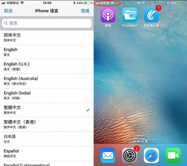 最后,需要让设备 Respring 才能显示修改后的效果。目前发现让 iOS11 设备快速 Respring 技巧就是,更换系统语言。前往“设置 >> 通用 >> iPhone 语言”可先切换成繁体中文,此时设备就会重新加载文件,随后就能看到运营商文字有了新变化。然后你再把语言改回原本语系即可。