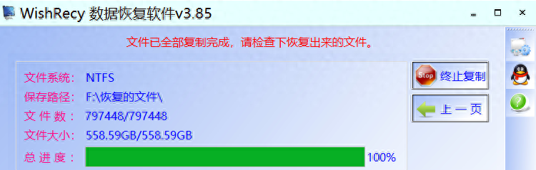 步骤4:最后一步只需要等待软件将资料复制完成就好了 。