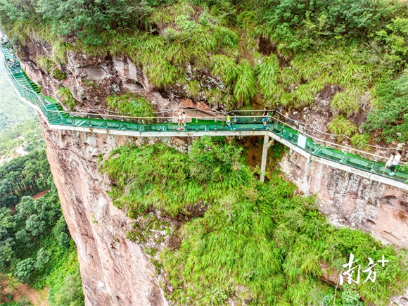 在南台山,除了能欣赏优美的风景,还可到体验悬崖秋千、“天空之镜”、玻璃栈道等富有趣味的娱乐设施。乘着秋千,荡入山谷中,山风不时吹来,令人舒适。站在天空之镜眺望山下、远处风景,让人心旷神怡。