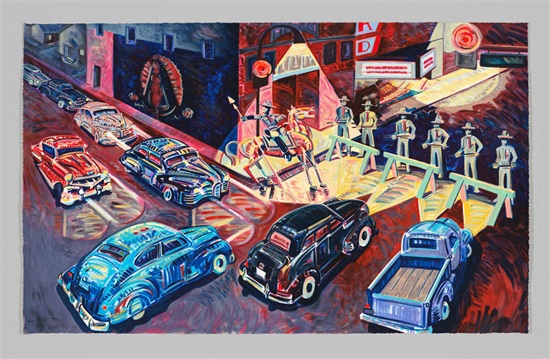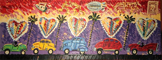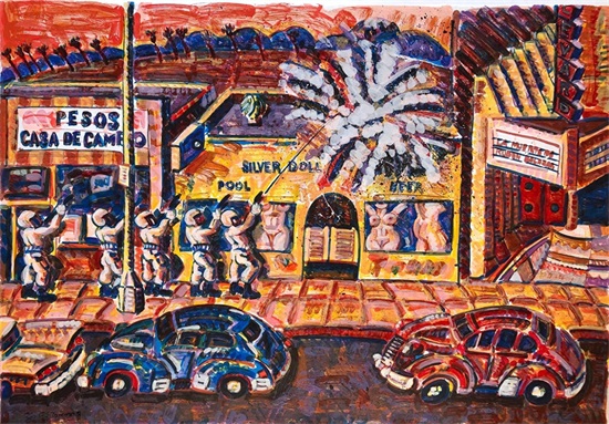 Frank Edward Romero 一位美国艺术家,被认为是奇卡诺艺术运动的先驱。他出生在1941年的加州洛杉矶博伊尔高地附近,是一个中产家庭的第三个孩子,其父母拥有西班牙和墨西哥血统,这就影响他未来对于奇卡诺艺术的探索。他的作品以奇卡诺艺术为基调探索了加州各地的城市和文化肖像,并在画作中融入棕榈树和鲜明的色彩作为创作特色。