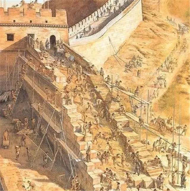 明代工匠在修筑长城