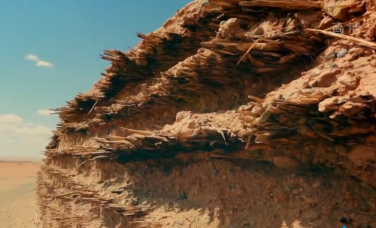 秦长城截面,能清晰看到两层夯土之间用芦苇等材料隔开,这样既能增加稳定性,也能增加排水性