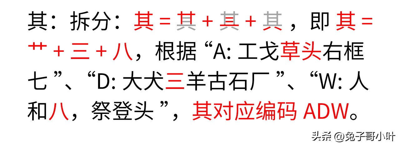 ,拆分方法:所在键位+第一笔+第二笔+末笔。拆分: