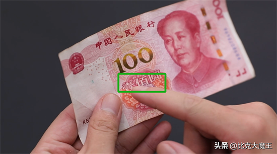 第2点我们来看一下钞票的右上角100元的字样