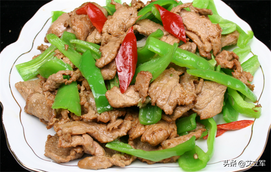 第一步:驴肉,青红椒,青椒切片,小米椒切斜圈。