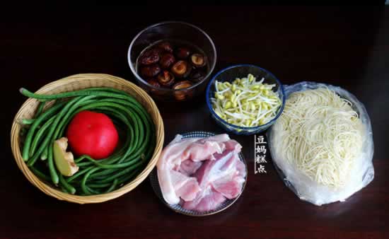 鲜面条、后腿肉、豆角