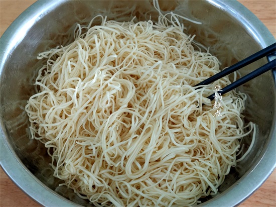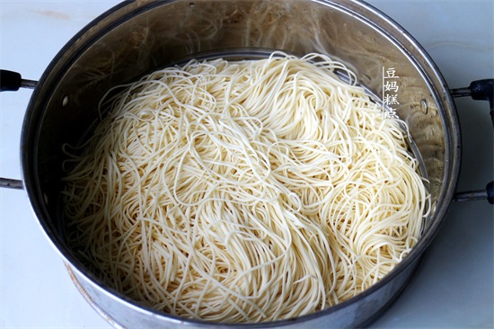后面还要再蒸,所以这个时候的面条还是有些生的噢~