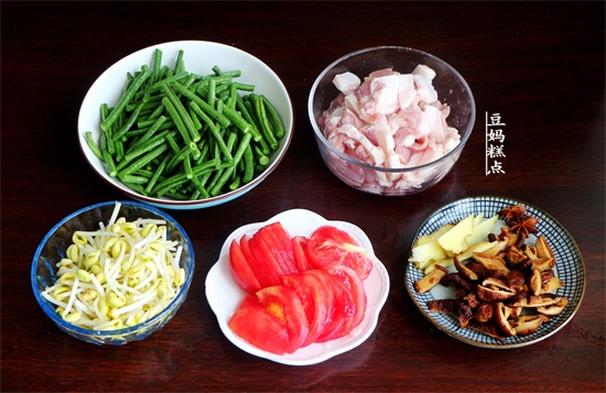 西红柿、豆芽、干香菇、生姜
