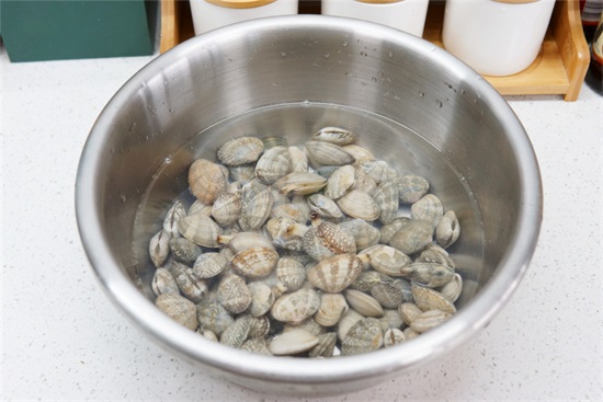 第一步:将花甲洗净放置在温水中浸泡半小时,等待花甲吐出泥沙,晃动干净。