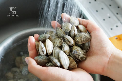再高超的厨艺也抵不过花甲里有沙子,所以一定要处理好花甲,泡花甲时不要用冷水泡,用温水泡能让花甲在短时间内将沙子吐干净,泡一会记得摇晃一下沉睡的花甲,再次使花甲将沙子吐干净,水温不要太高,容易把花甲烫死,一般手放进水中感觉不烫为宜。