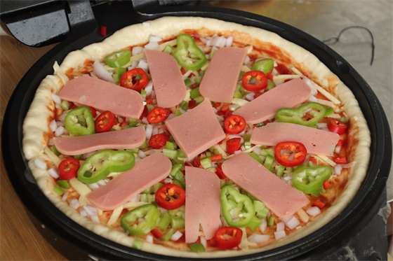 配菜:青辣椒,红辣椒,洋葱,午餐肉,芝士,番茄酱