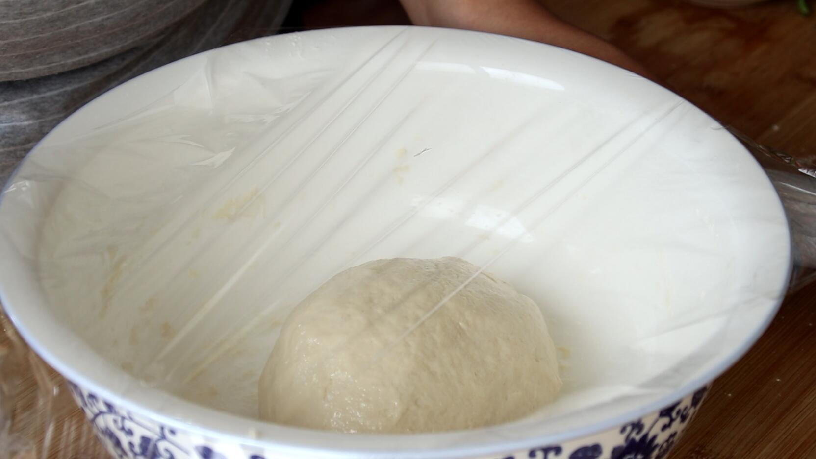 1、和面:先准备一个大脸盆,盆中放入三百克面粉,放入三克酵母粉,三克盐增加劲性,放入五克的白糖,促进酵母的发酵,先搅拌均匀,在分次加入清水,搅拌成絮状,加入10g食用油,给它和成面团,这样不软不硬就可以,将面揉成光滑的面团,抹上食用油,抹均匀,盖上保鲜膜,醒发至两倍大