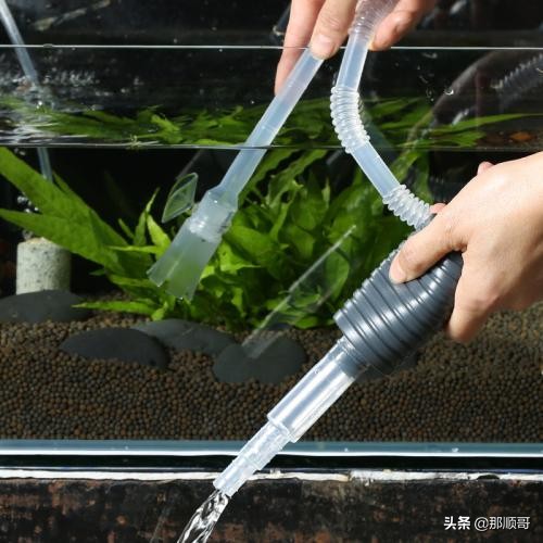 一般意义上的换水,大家都清楚,就是拿一根水管,借着物理学原理给鱼缸换水,顺便吸走落在鱼缸底部的垃圾和废物,这样始终可以让鱼缸保持清洁和靓丽,有些人为了美观还会在底部铺上一层细沙,也可以起到隐藏垃圾的效果,但关键点就是换水的频次一定要坚持,不然的话很容易起绿藻,也就是爆缸了,我曾经有几次在缸里养出来了小蜗牛,还挺高兴,后来才知道是换水不勤的原因……