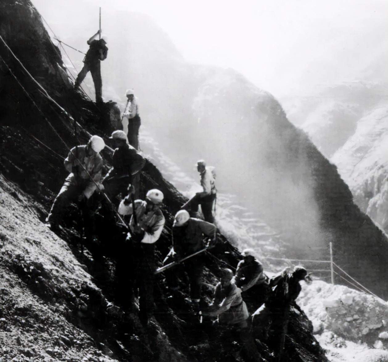 △开山劈路,修筑贵昆铁路乌蒙大道的铁道兵战士