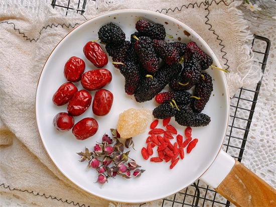 【原材料】桑葚、玫瑰花、红枣、枸杞、冰糖;