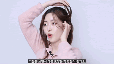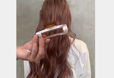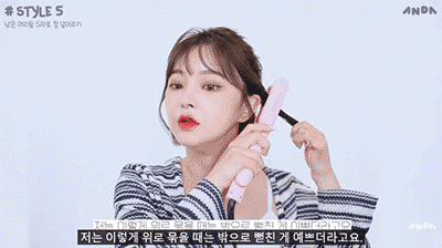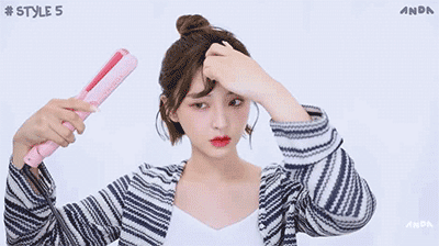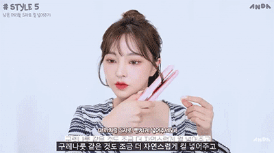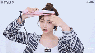 接着就是直发棒登场时刻,将脸两侧的发丝内外卷两下,可以显脸小。