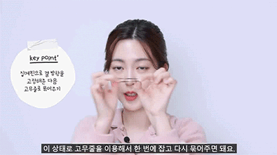 重点来了,那种一次性的黑色小橡筋,拿出来将刘海和马尾集合固定。