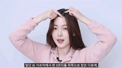 准备好一个小夹子,要那种好取下的,把这缕头发固定在一个你觉得最能显脸小的位置,蓬松度也可以顺手调节。