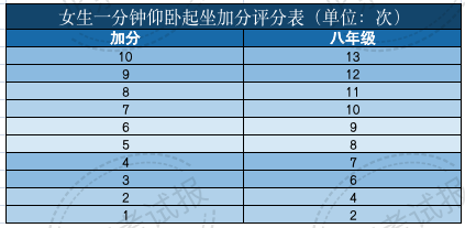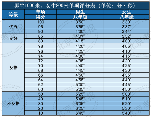 中考体育800米评分标准女(初中女生800米成绩对照表)