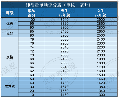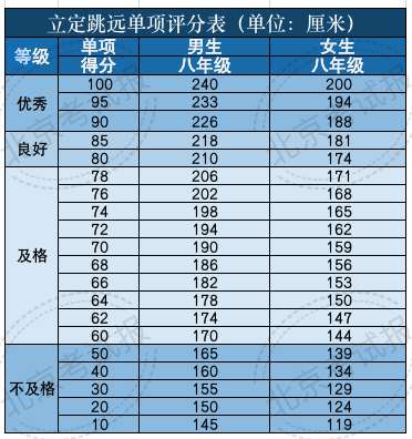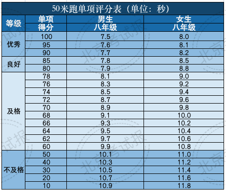 评分标准依据《国家学生体质健康标准(2014年修订)》确定,该标准由教育部确定、全国大中小学统一适用。
