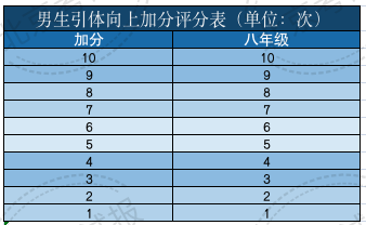 【注】引体向上、一分钟仰卧起坐均为高优指标,学生成绩超过单项评分100分后,以超过的次数所对应的分数进行加分。