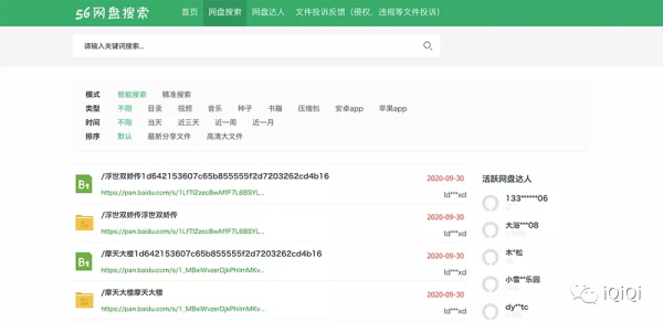 56网盘在网站首页提供了最新网盘资源收录列表,同时在网盘资源搜索页面提供了文件筛选功能,你可以选择搜索模式、文件类型、时间和排序方式,还可以查看网盘达人分享的资源。更重要的是,56网盘为用户提供了文件投诉反馈的入口,如果你发现网友分享的文件涉及侵权违规等等,你可以选择举报。