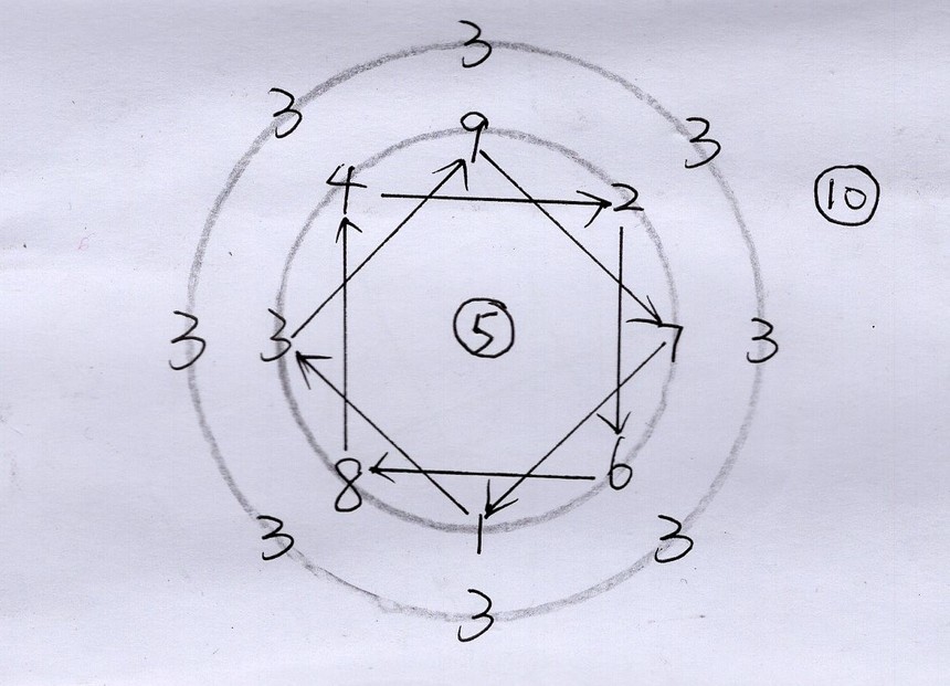 X-3,即洛书各宫分别乘以“3”所呈现的整体数理景象