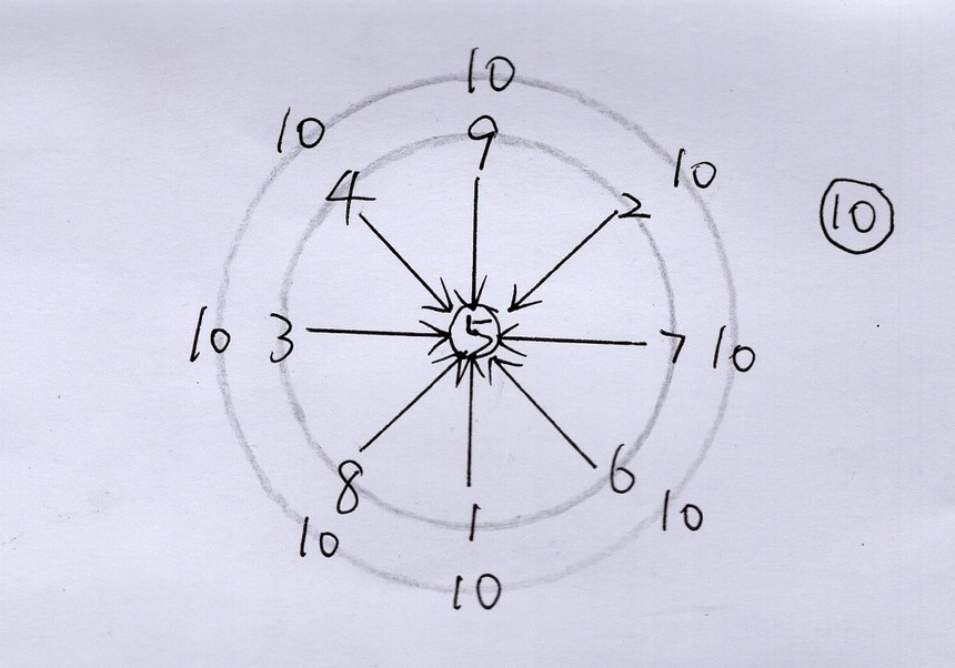 X-10,即洛书各宫分别乘以“10”所呈现的整体数理景象