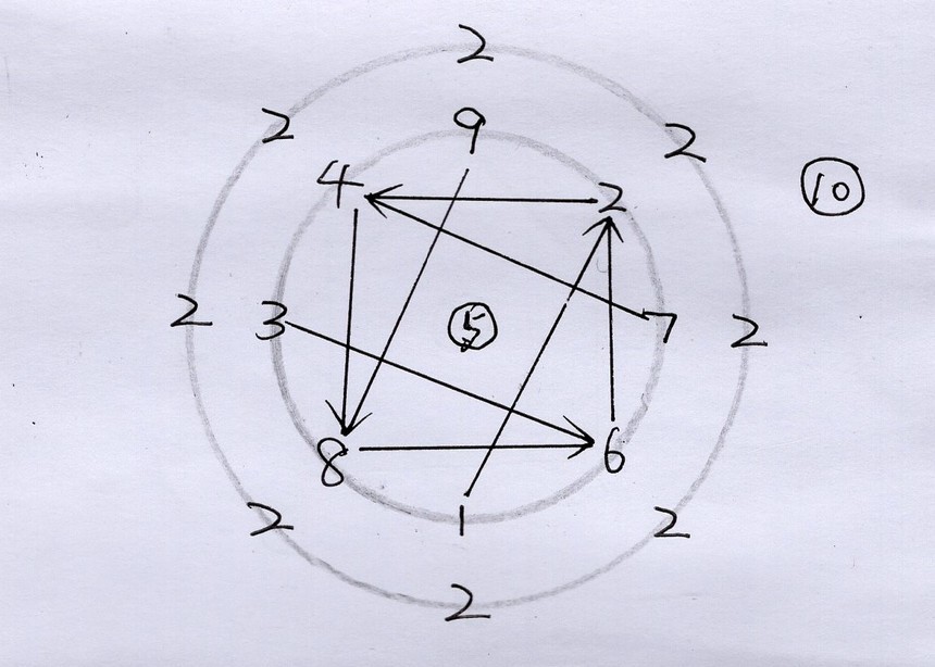 X-2,即洛书各宫分别乘以“2”所呈现的整体数理景象