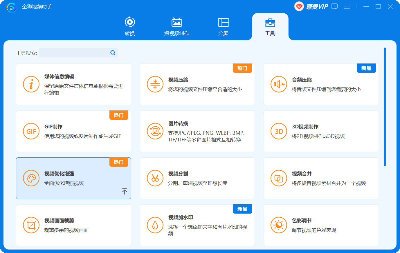 旋转后,如果您觉得需要提高视频质量,请单击“工具”>“视频优化增强”,然后将视频添加进去。你可以提高分辨率,优化亮度和对比度,消除噪音或颗粒,一键减少视频抖动。单击“确定”即可保存您的视频增强结果。