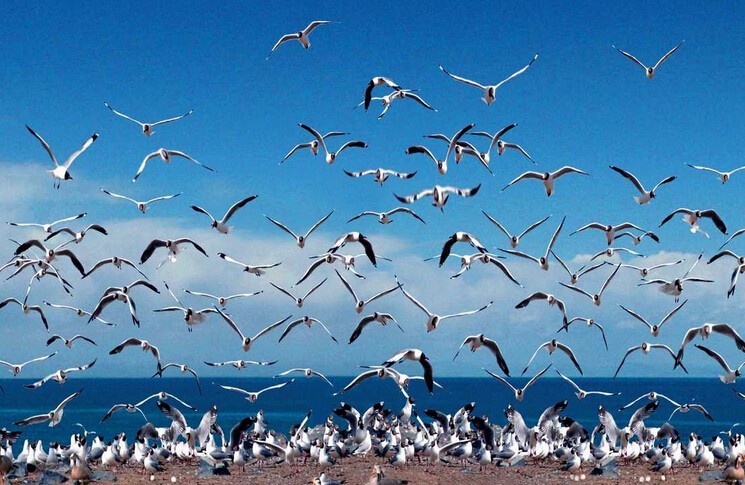 4月起鸟儿陆续飞往鸟岛,5-7月是观鸟的最佳季节,9月能目睹大批斑头雁排成“人”字队伍集体飞往南方的动人场面,而观看大天鹅的最好时节则是在每年11月-2月。