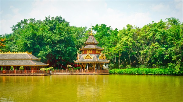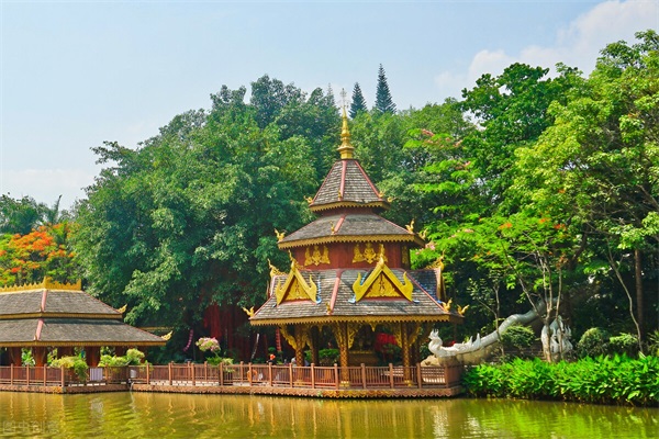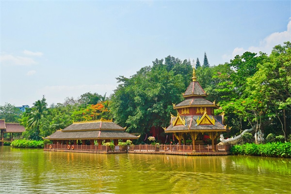 曼听公园以前曾是傣王的御花园,有着1300多年的历史,位于西双版纳傣族自治州景洪市曼听路35号。这是一处民族特色十分浓郁的天然村寨式公园,公园被葱茏繁茂的热带植物包围着,拍照十分好看,自带东南亚风情。