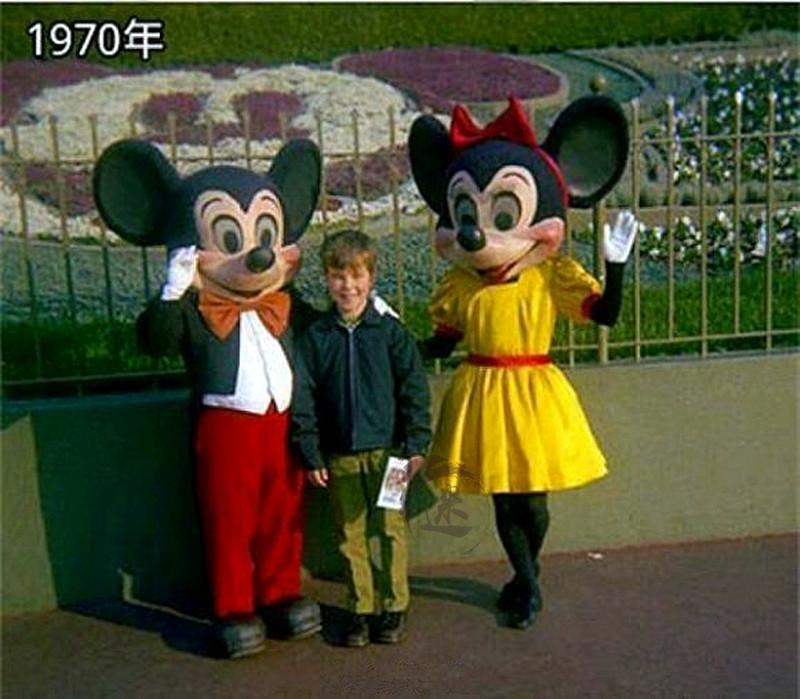 动画人物的形象应该被夸大。米奇和米妮的最初印象是,身体骨干和动画一样纤细,但身高非常不一致。再加上头套的衬托,真的是