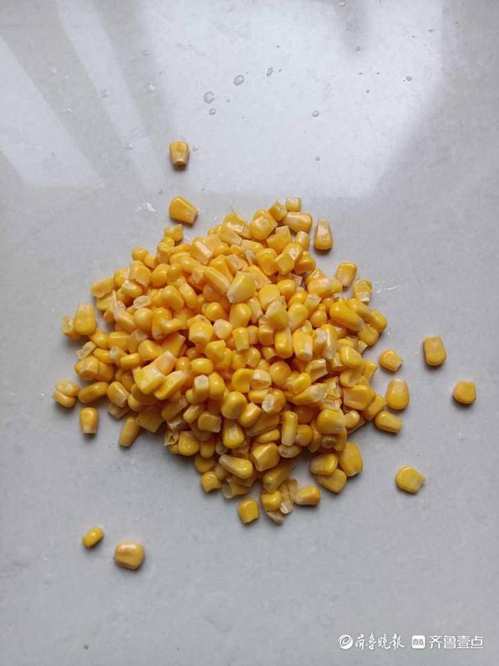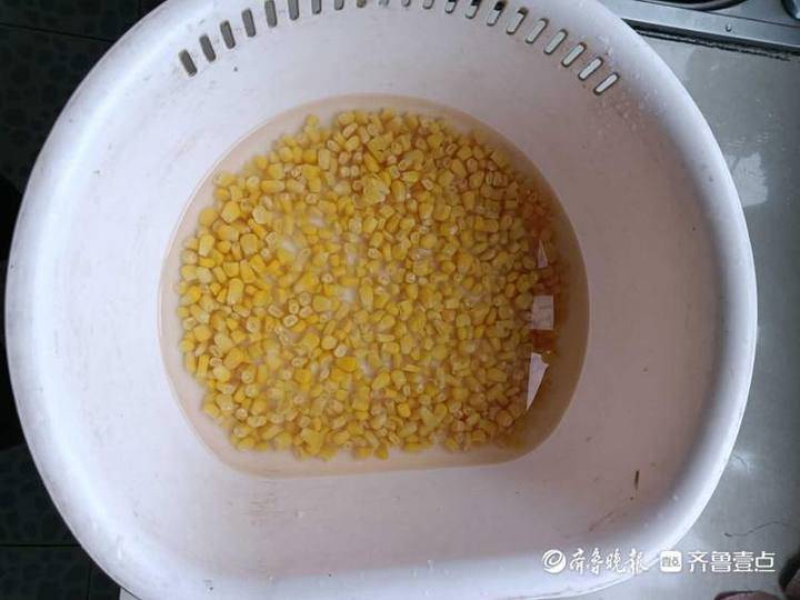 1、先把嫩玉米的颗粒弄下来,用水洗一下;